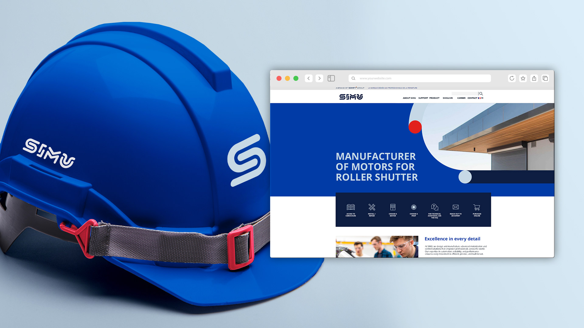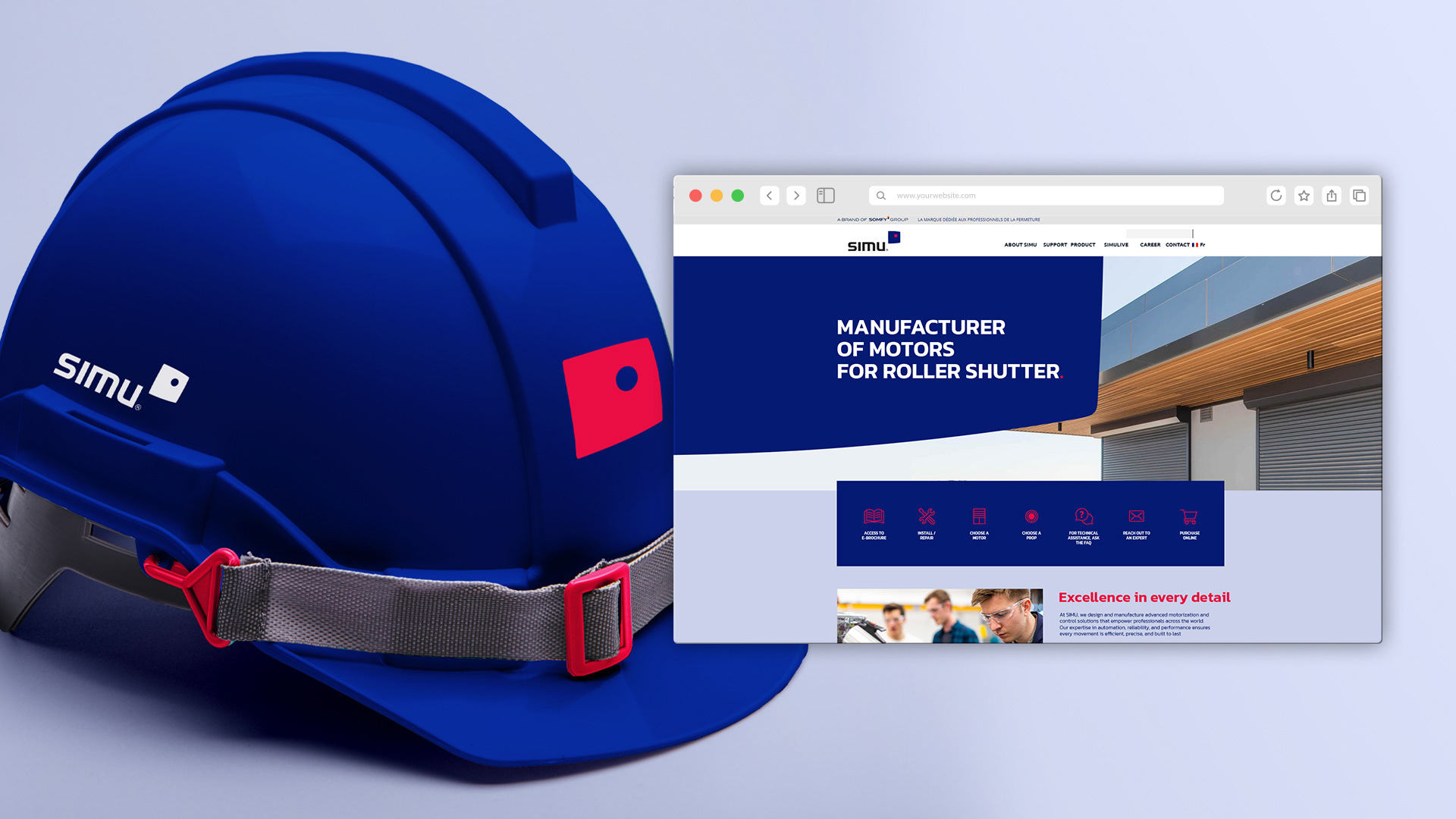 This direction is relooking at the current components of the identity while adjusting the proportion and giving space to express itself. The bright circle is an echo to Simu's product (motor) while the window is a projection of new opportunities coming ahead.