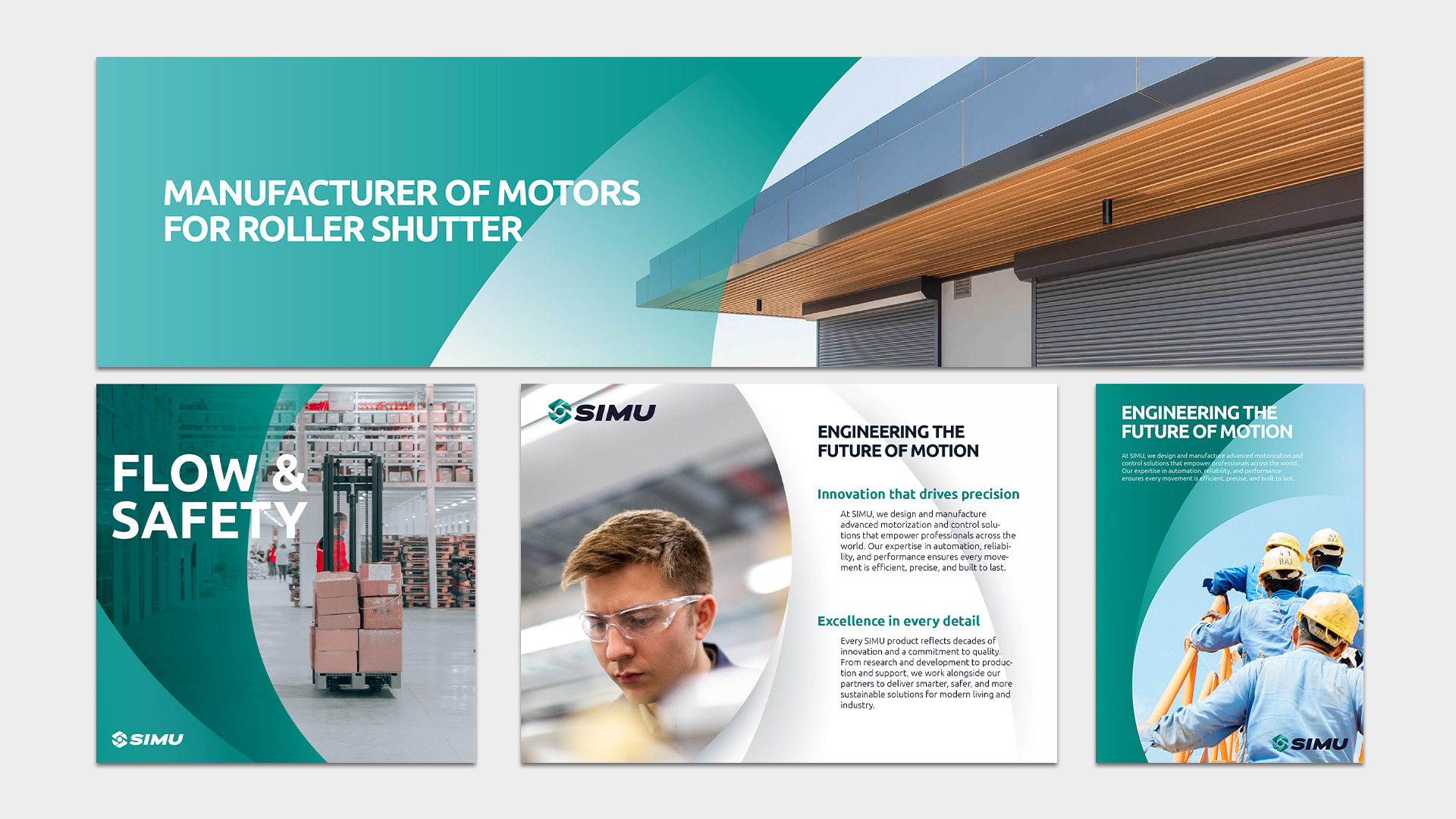 The first direction is offering a new visual approach to Simu's identity. Anchoring the brand with a modern, steady and refreshing look. This concept aim to visually showcase the company industry.